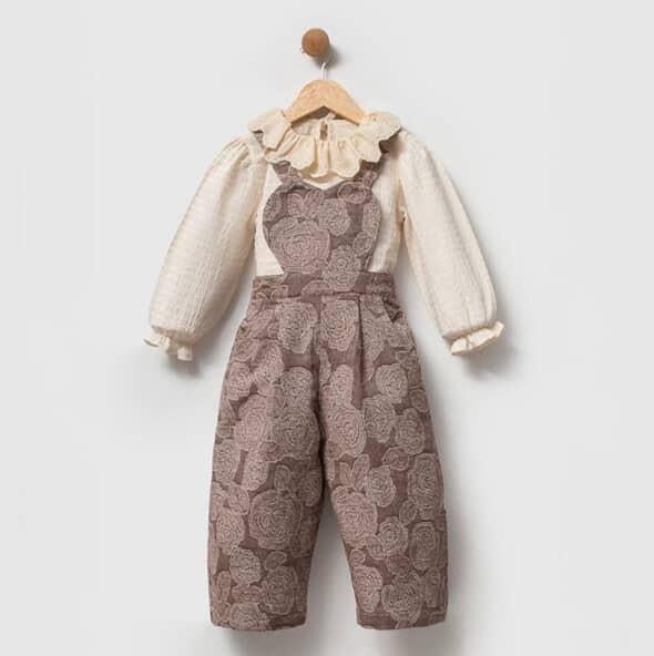 Kahve  Çiçek Detaylı İkili Tulum